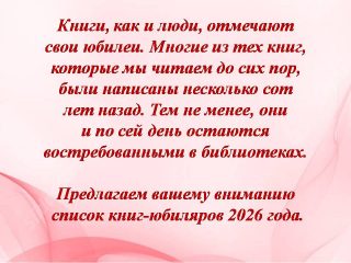 «Книги — юбиляры 2026 года» Posted on 19.02.2026 By admin Просмотров: 10 2026 год, Новости библиотеки